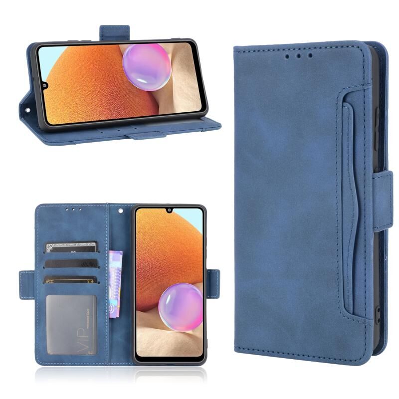 Για Samsung Galaxy A32 4G δέρμα αίσθηση μοσχάρι μοτίβο οριζόντια Flip δερμάτινη θήκη με υποδοχή & υποδοχές για κάρτες & πλαίσιο φωτογραφιών (Μπλε)