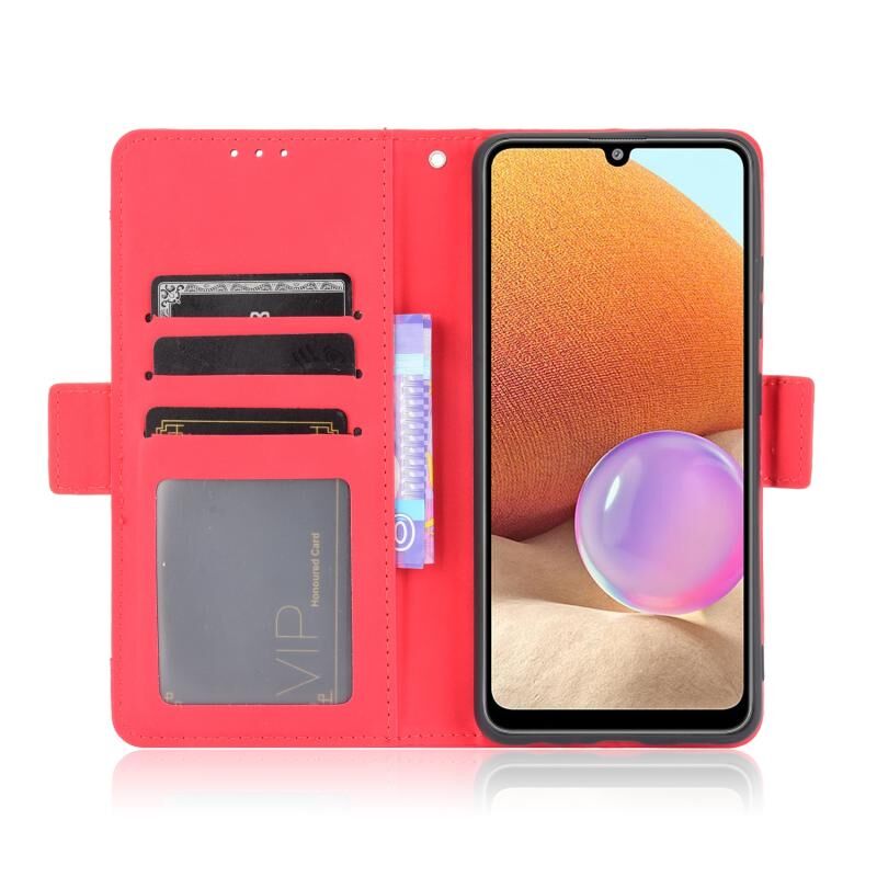 Για Samsung Galaxy A32 4G δέρμα αίσθηση μοσχάρι μοτίβο οριζόντια Flip δερμάτινη θήκη με υποδοχή & υποδοχές για κάρτες & πλαίσιο φωτογραφιών (Κόκκινο)