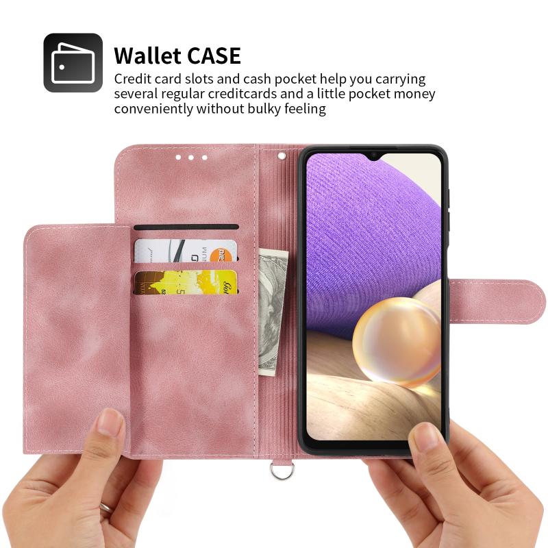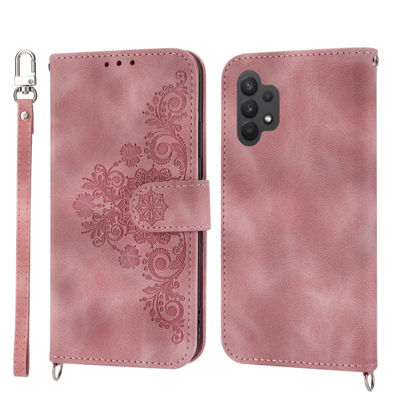 Θήκη τηλεφώνου Samsung Galaxy A32 4G από δέρμα με ανάγλυφα λουλούδια και υφή δέρματος (ρόζ)