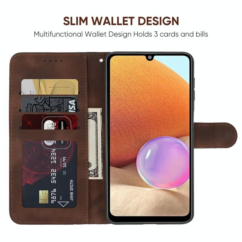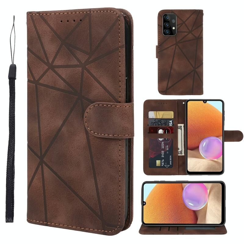 Θήκη τηλεφώνου Samsung Galaxy A32 4G με δερμάτινη υφή, γεωμετρικά σχέδια (Καφέ)