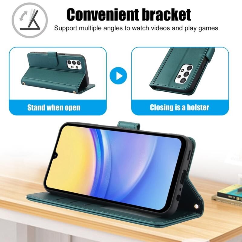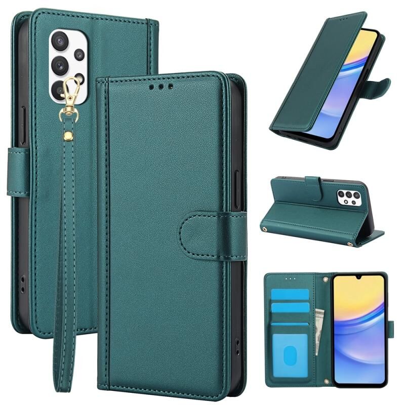 Για Samsung Galaxy A32 4G δέρμα αίσθηση καθαρό χρώμα κάρτα υποδοχές δερμάτινη θήκη τηλεφώνου με διπλό κορδόνι (πράσινο)