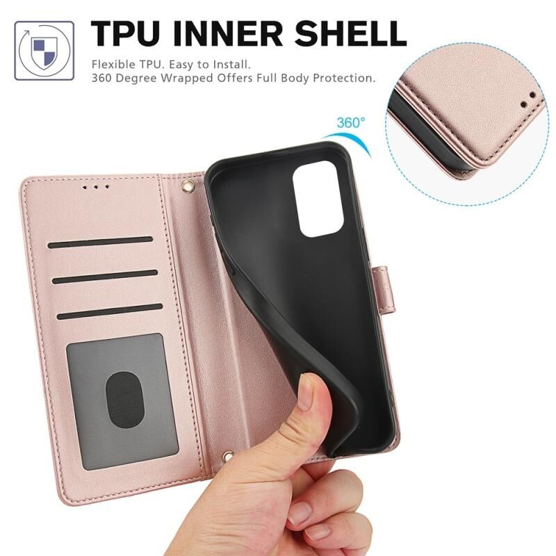 Για Samsung Galaxy A32 4G δέρμα αίσθηση καθαρό χρώμα κάρτα υποδοχές δερμάτινη θήκη τηλεφώνου με διπλό κορδόνι (ροζ χρυσό)