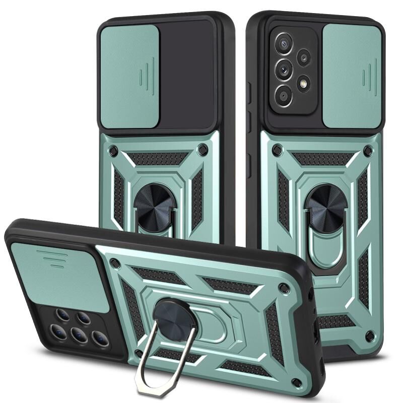 Για Samsung Galaxy A32 4G συρόμενη κάμερα κάλυμμα Σχεδιασμός TPU + PC προστατευτική θήκη (σκούρο πράσινο)