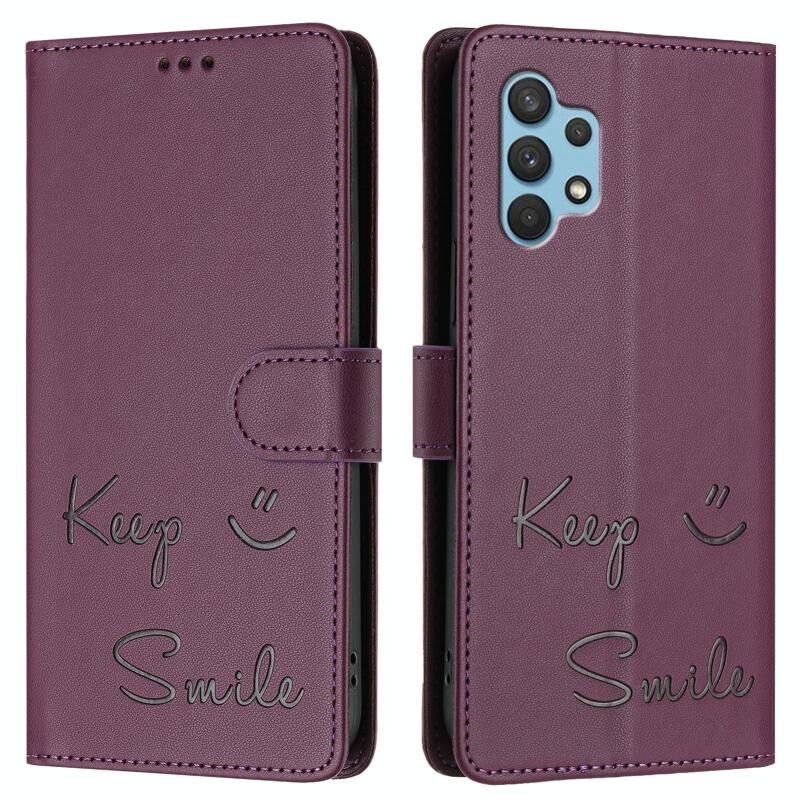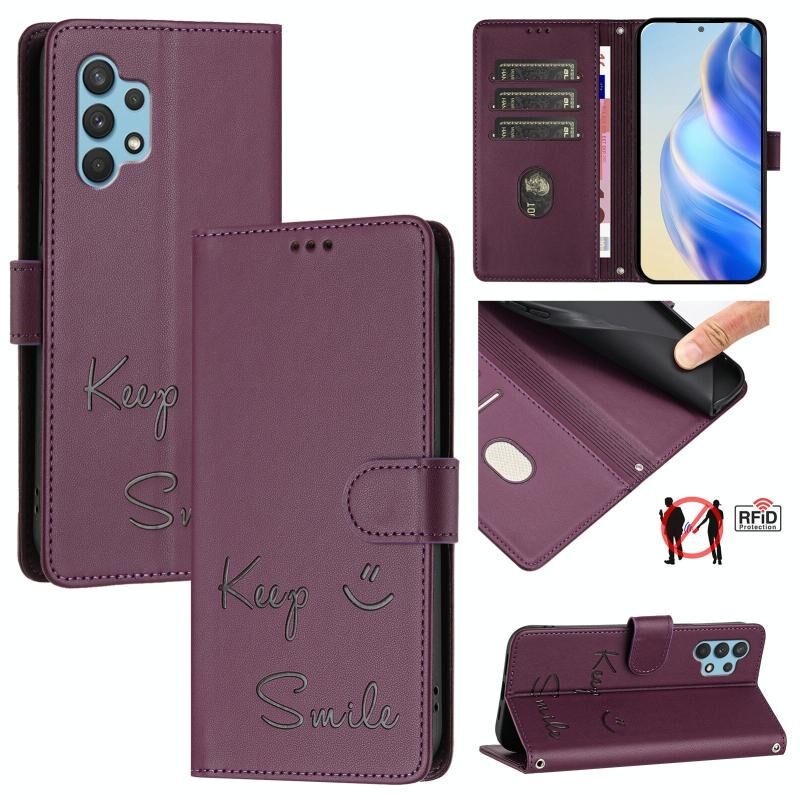 Για Samsung Galaxy A32 4G χαμόγελο ανάγλυφο RFID δερμάτινη θήκη τηλεφώνου (Violet)