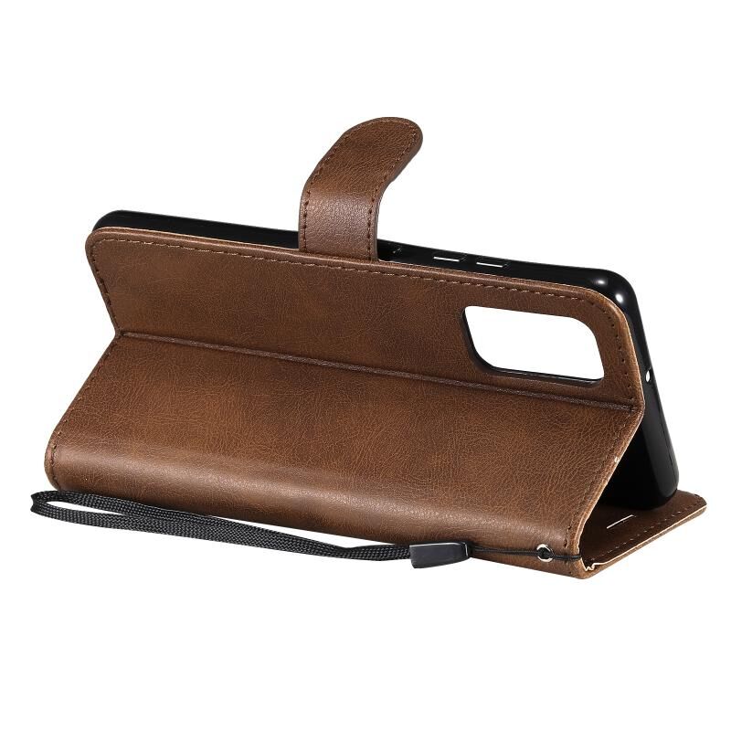 Για Samsung Galaxy A32 4G Αμιγές χρώμα οριζόντια Flip προστατευτική δερμάτινη θήκη με θήκη & υποδοχές για κάρτες & πορτοφόλι & κορνίζα & κορδόνι (καφέ)
