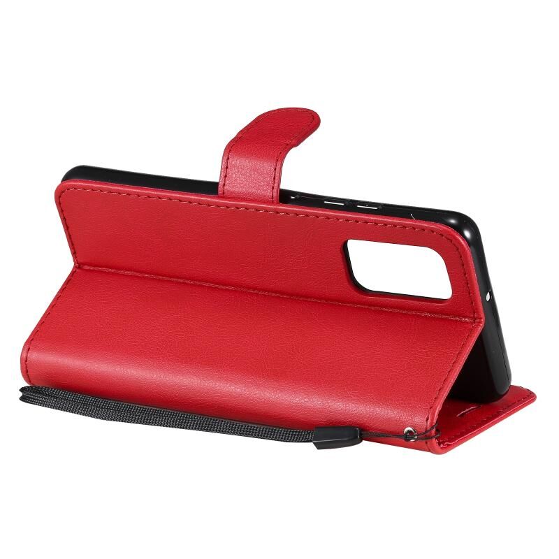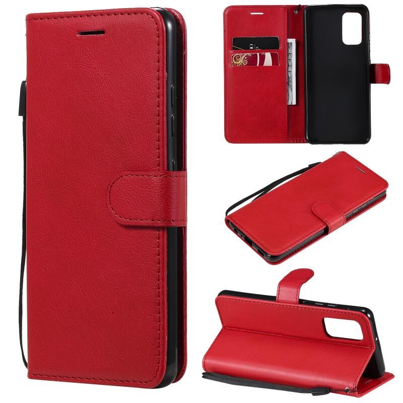 Για Samsung Galaxy A32 4G Αμιγές χρώμα οριζόντια Flip προστατευτική δερμάτινη θήκη με θήκη & υποδοχές για κάρτες & πορτοφόλι & κορνίζα & κορδόνι (κόκκινο)