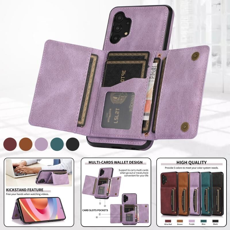 Για το Samsung Galaxy A32 4G Τρεις-πτυχή δερμάτινη θήκη τηλεφώνου με υποδοχή για κάρτες & πορτοφόλι & θήκη (Μωβ)