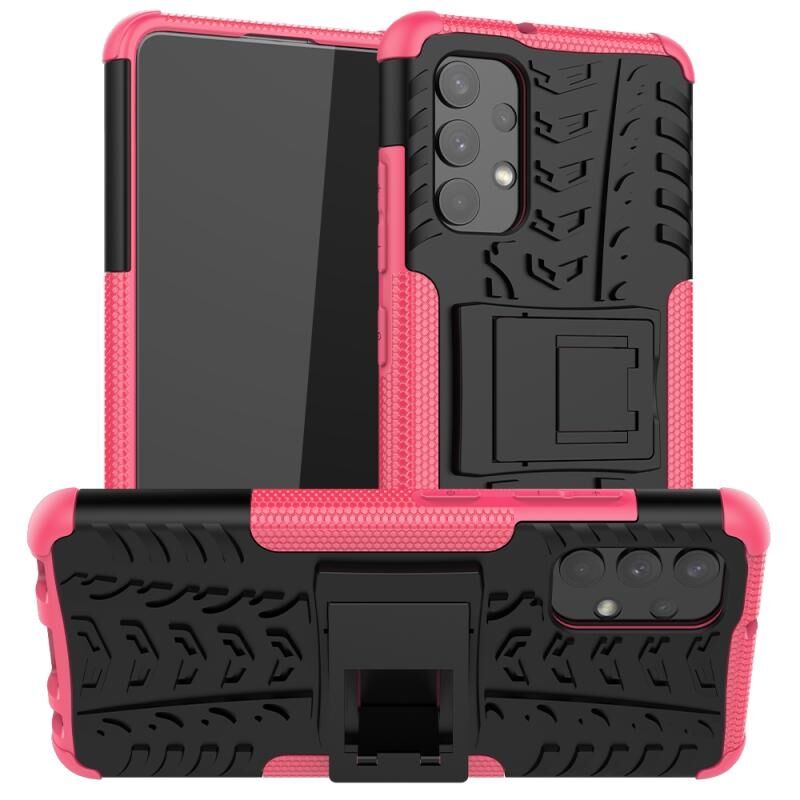 Για Samsung Galaxy A32 4G ελαστικών υφή Shockproof TPU + PC προστατευτική θήκη με κάτοχο (ροζ)