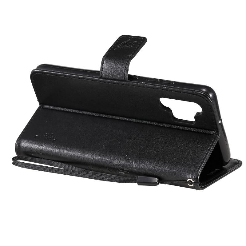 Θήκη Samsung Galaxy A32 4G με σχέδιο Δέντρου & Γάτας, εκτύπωση με θερμοτύπηση, οριζόντια, από δερματίνη PU με βάση στήριξης, θήκες για κάρτες, πορτοφόλι & κορδόνι (Πράσινο)