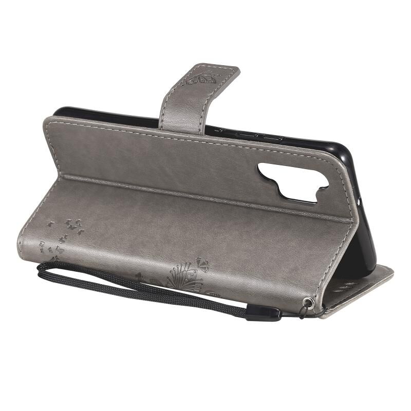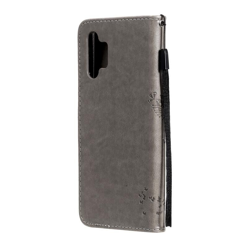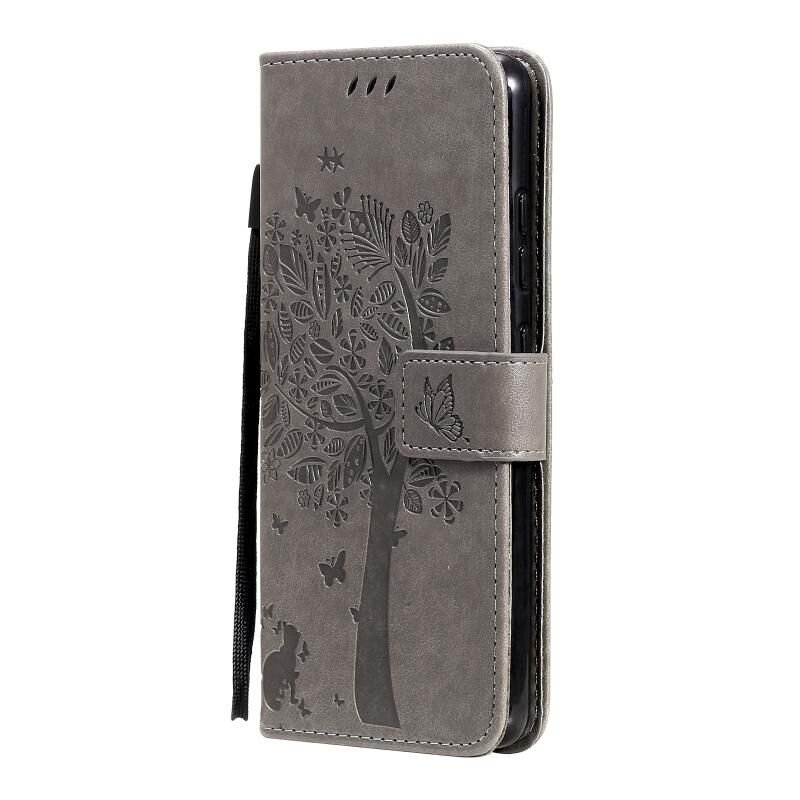 Θήκη Samsung Galaxy A32 4G με σχέδιο Δέντρου & Γάτας, εκτύπωση με θερμοτύπηση, οριζόντια, από δερματίνη PU με βάση στήριξης, θήκες για κάρτες, πορτοφόλι & κορδόνι (Γκρι)