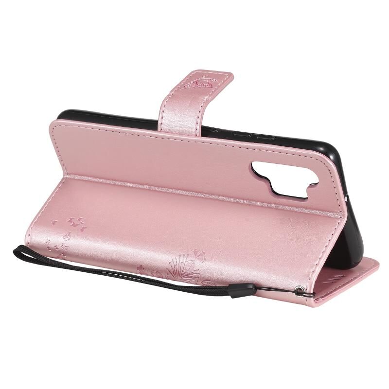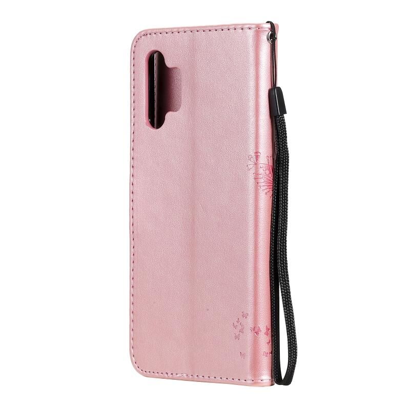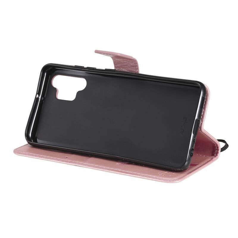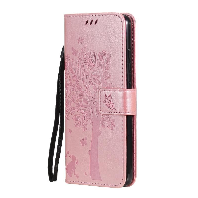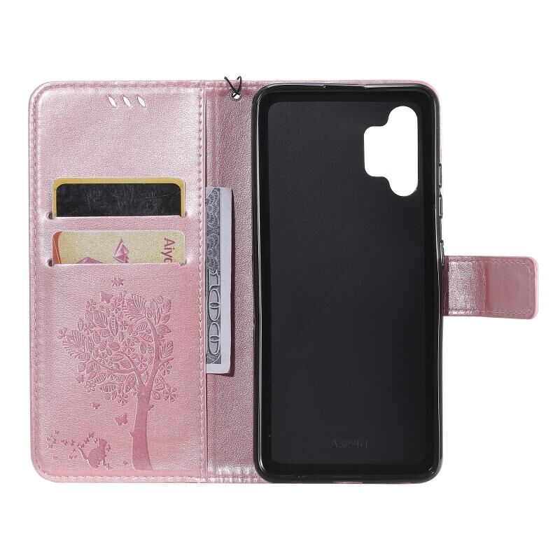 Θήκη Samsung Galaxy A32 4G με σχέδιο Δέντρου & Γάτας, εκτύπωση με θερμοτύπηση, οριζόντια, από δερματίνη PU με βάση στήριξης, θήκες για κάρτες, πορτοφόλι & κορδόνι (Ροζ χρυσός)