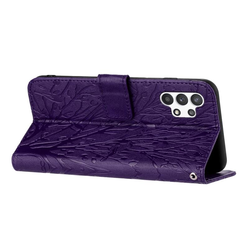 For Samsung Galaxy A32 4G Tree Birds Embossed Pattern Leather Phone Case(Purple)