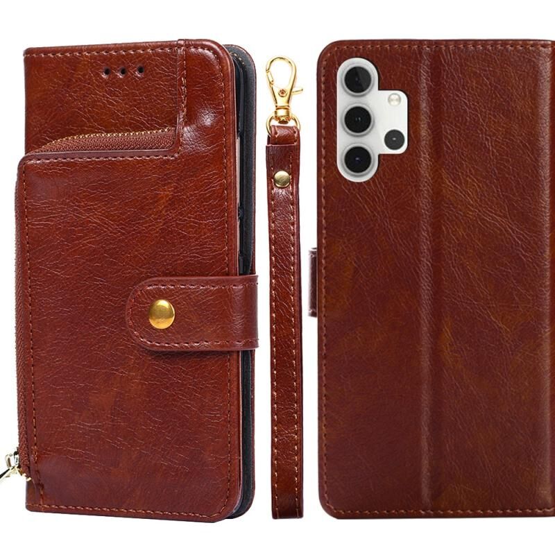 Για Samsung Galaxy A32 4G φερμουάρ τσάντα PU + TPU οριζόντια Flip δερμάτινη θήκη με θήκη & υποδοχή κάρτας & πορτοφόλι & κορδόνι (Καφέ)