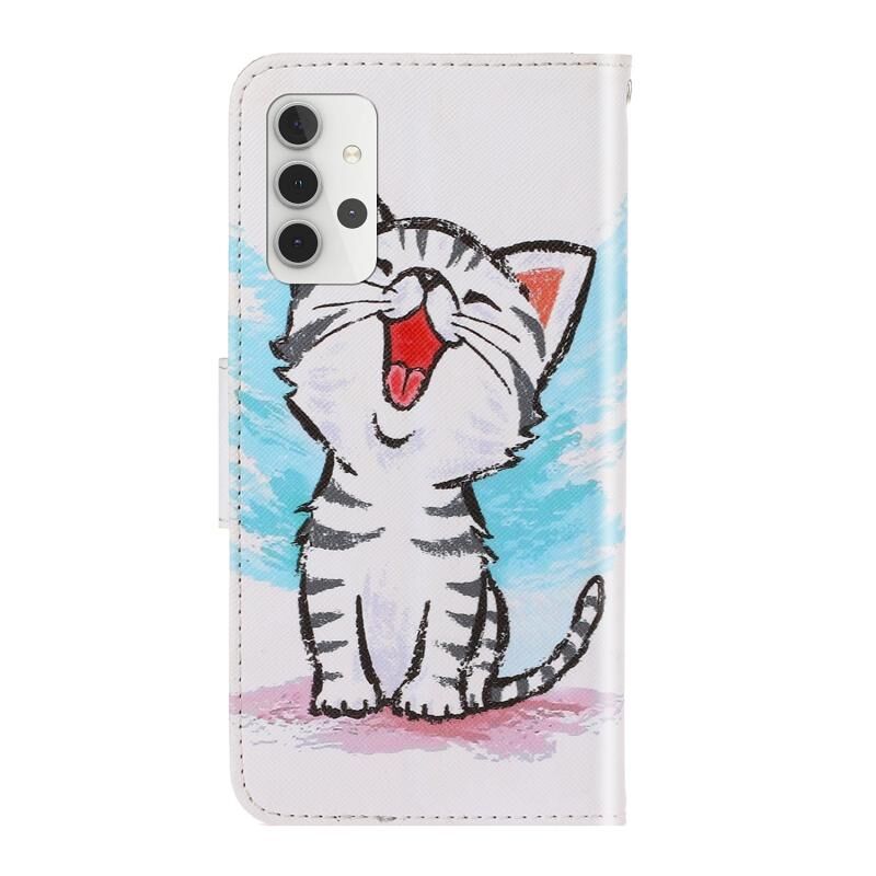Θήκη τηλεφώνου Samsung Galaxy A32 5G 3D με έγχρωμο σχέδιο, οριζόντια αναδιπλούμενη από δέρμα με βάση στήριξης & θήκες για κάρτες & πορτοφόλι (Κόκκινο Στόμα Γάτας)