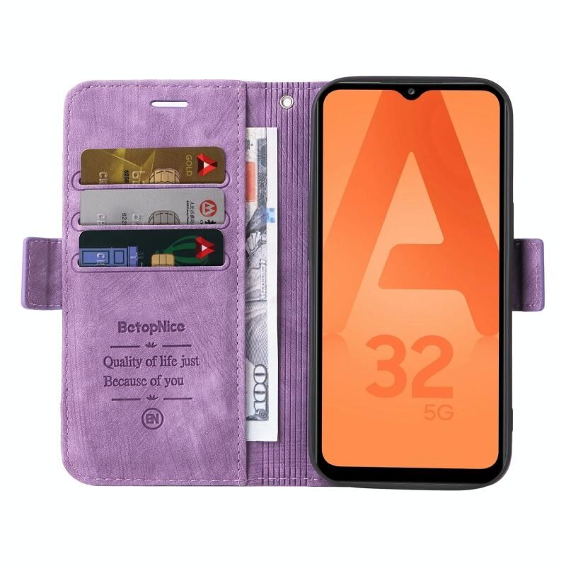 Θήκη τηλεφώνου δερμάτινη με διπλή αγκράφα για Samsung Galaxy A32 5G BETOPNICE (Μωβ) (BETOPNICE)