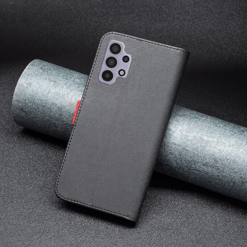 Για Samsung Galaxy A32 5G BF13 χρώμα ταιριάζει με σταυρό υφή δερμάτινη θήκη τηλεφώνου (μαύρο)