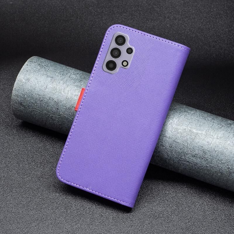 Για Samsung Galaxy A32 5G BF13 χρώμα ταιριάζει με σταυρό υφή δερμάτινη θήκη τηλεφώνου (μωβ)
