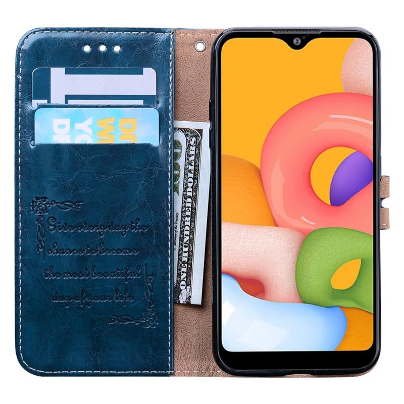 Για Samsung Galaxy A32 5G Business Style Oil Wax Texture Οριζόντια Flip δερμάτινη θήκη με θήκη & υποδοχές για κάρτες & πορτοφόλι (μπλε)