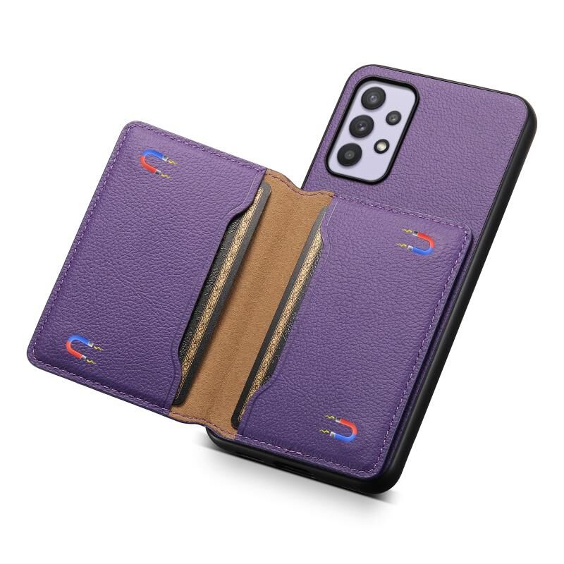 Θήκη κινητού τηλεφώνου Samsung Galaxy A32 5G με σχέδιο τσάντας κάρτας υφής μοσχαριού, πλήρης κάλυψη (Μωβ)