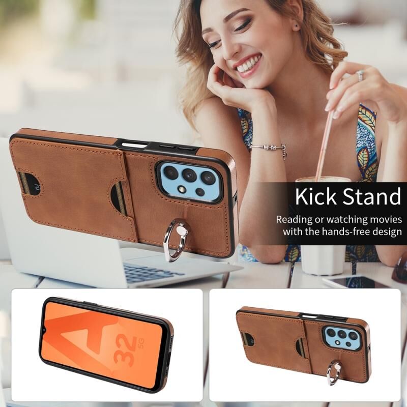 Για Samsung Galaxy A32 5G 5G Calf Υφή κάρτα Slot δαχτυλίδι κάτοχος υπόθεση τηλεφώνου (καφέ)