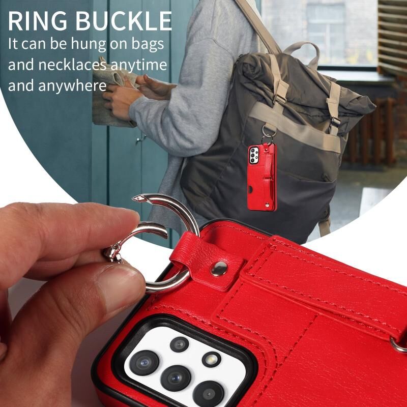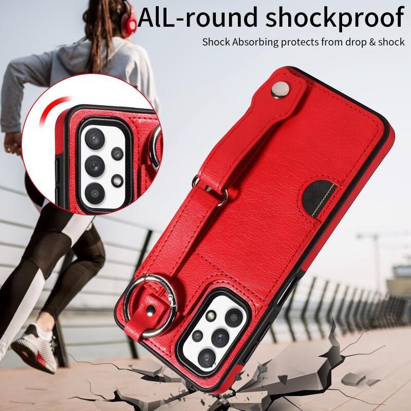 Για Samsung Galaxy A32 5G 5G Calf Υφή καρπού κάρτα Slot Ring υπόθεση τηλεφώνου (κόκκινο)