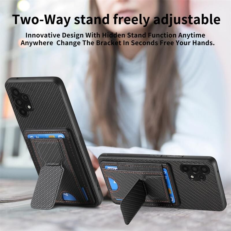Για το Samsung Galaxy A32 5G ινών άνθρακα 5G Πτυσσόμενα Stand ελαστική κάρτα τσάντα υπόθεση τηλεφώνου (μαύρο)