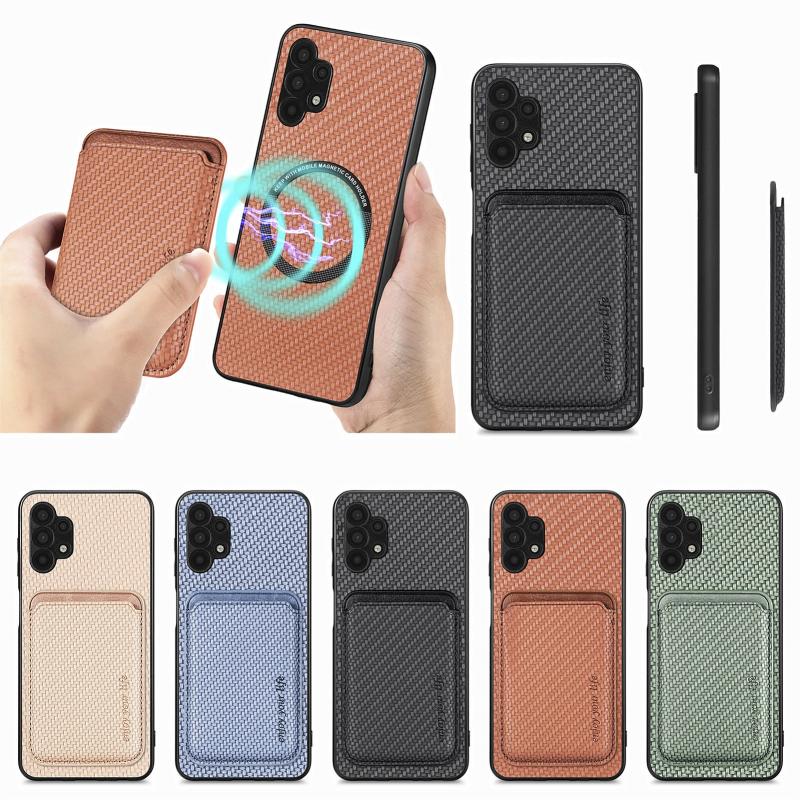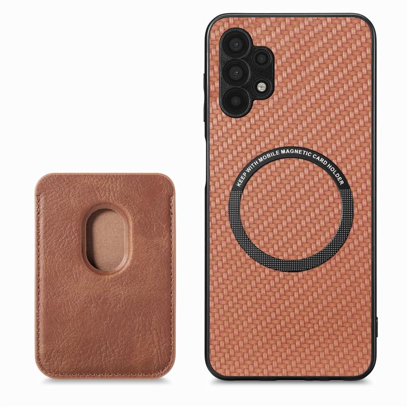 For Samsung Galaxy A32 5G Carbon Fiber Leather Card Magsafe Magnetic Phone Case(Brown)
