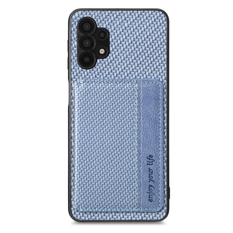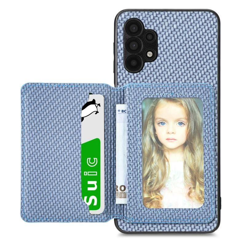 Για Samsung Galaxy A32 5G ινών άνθρακα μαγνητική κάρτα πορτοφόλι τσάντα πορτοφόλι υπόθεση τηλεφώνου (μπλε)