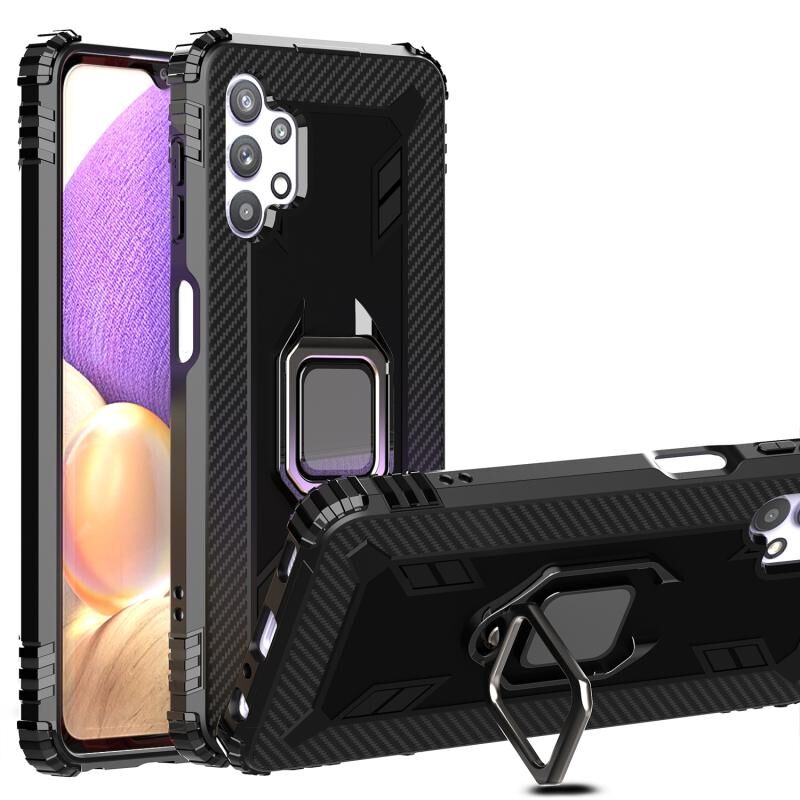 Για Samsung Galaxy A32 5G Προστατευτική θήκη από ανθρακονήματα με περιστρεφόμενη θήκη δακτυλίου 360 μοιρών (Μαύρο)