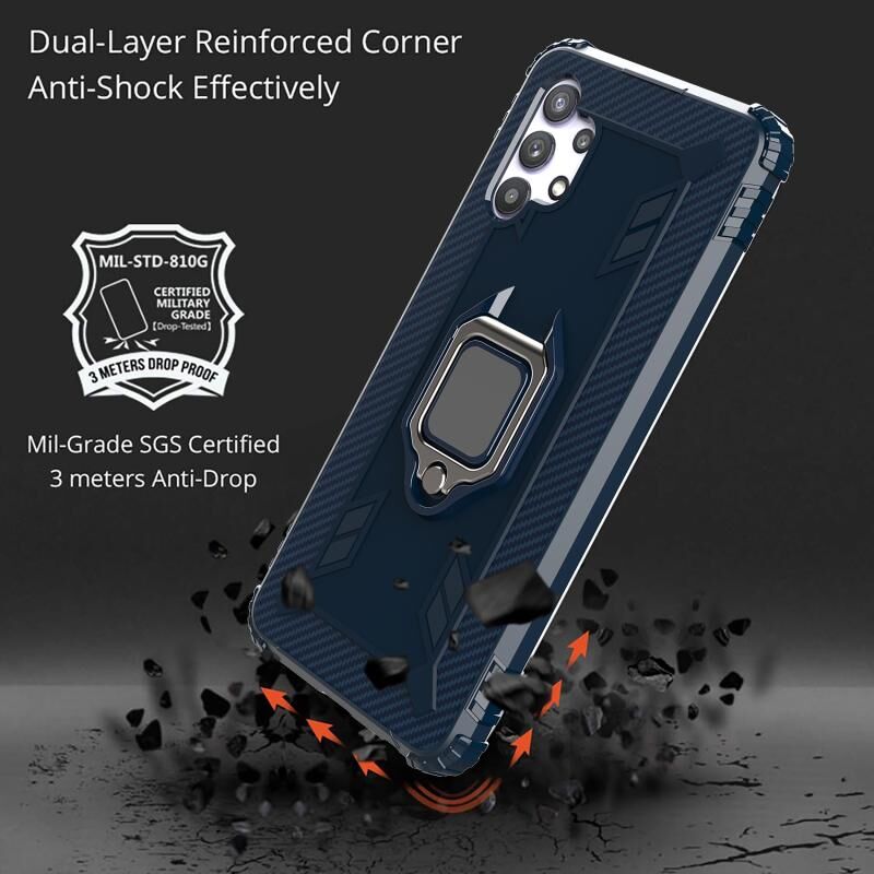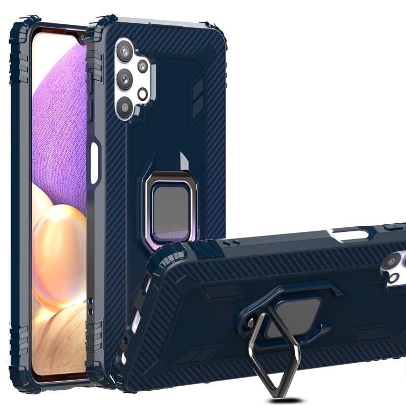 Για το Samsung Galaxy A32 5G Προστατευτική θήκη από ανθρακονήματα με περιστρεφόμενη θήκη δακτυλίου 360 μοιρών (Μπλε)