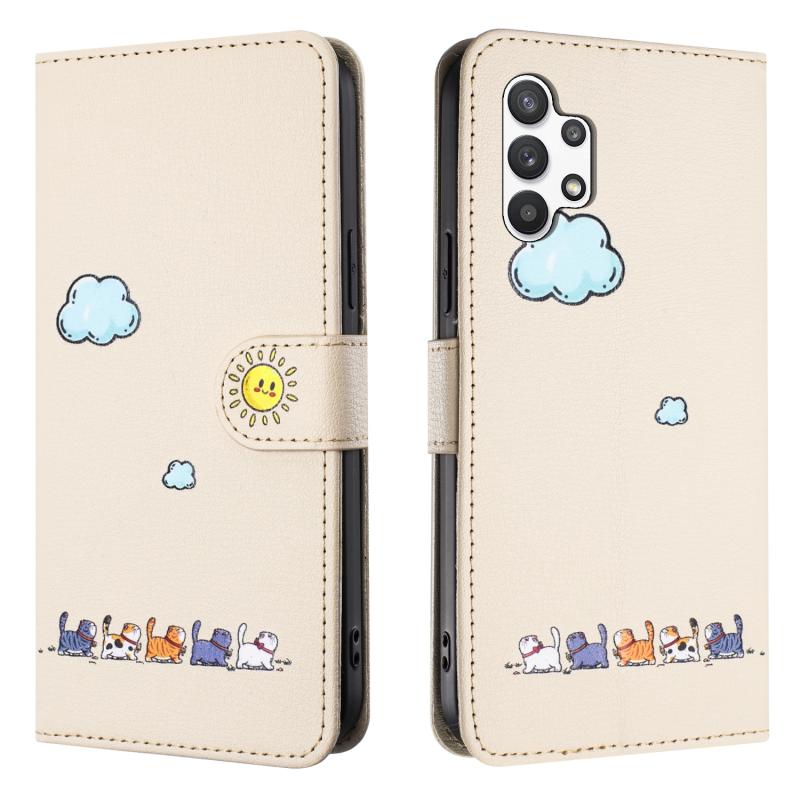 Θήκη τηλεφώνου Samsung Galaxy A32 5G από δέρμα με σχέδια χαριτωμένων γατών (Μπλε)