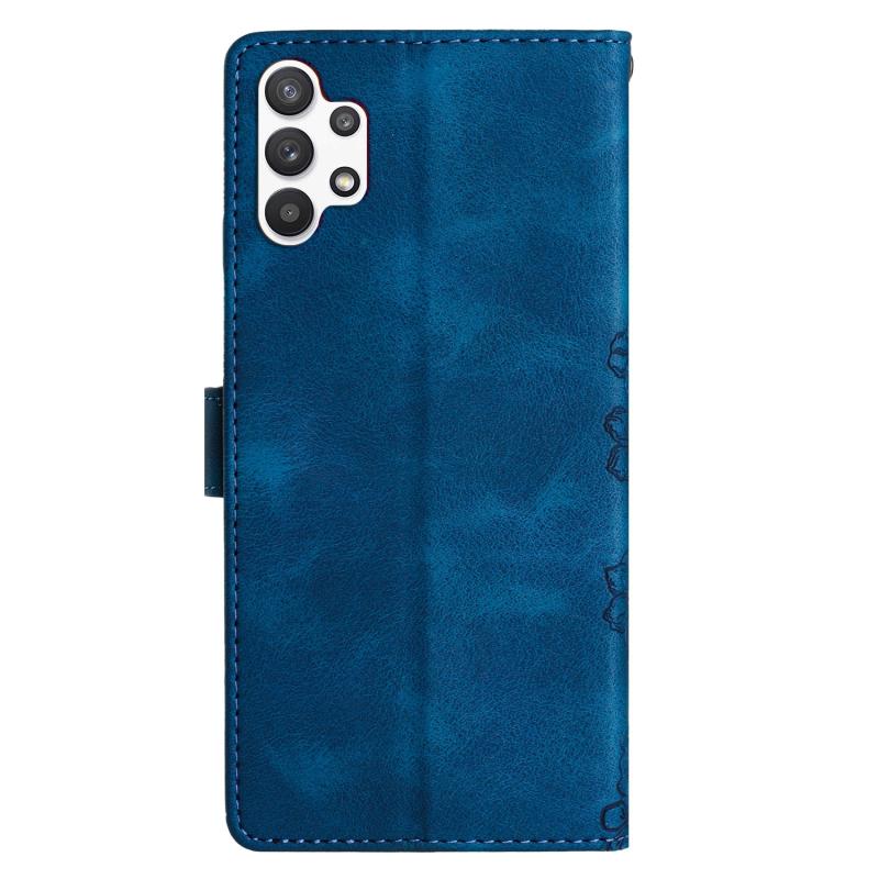 For Samsung Galaxy A32 5G Cherry Blossom Butterfly Skin Feel Embossed PU Phone Case(Blue)
