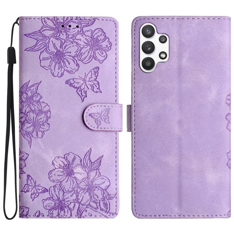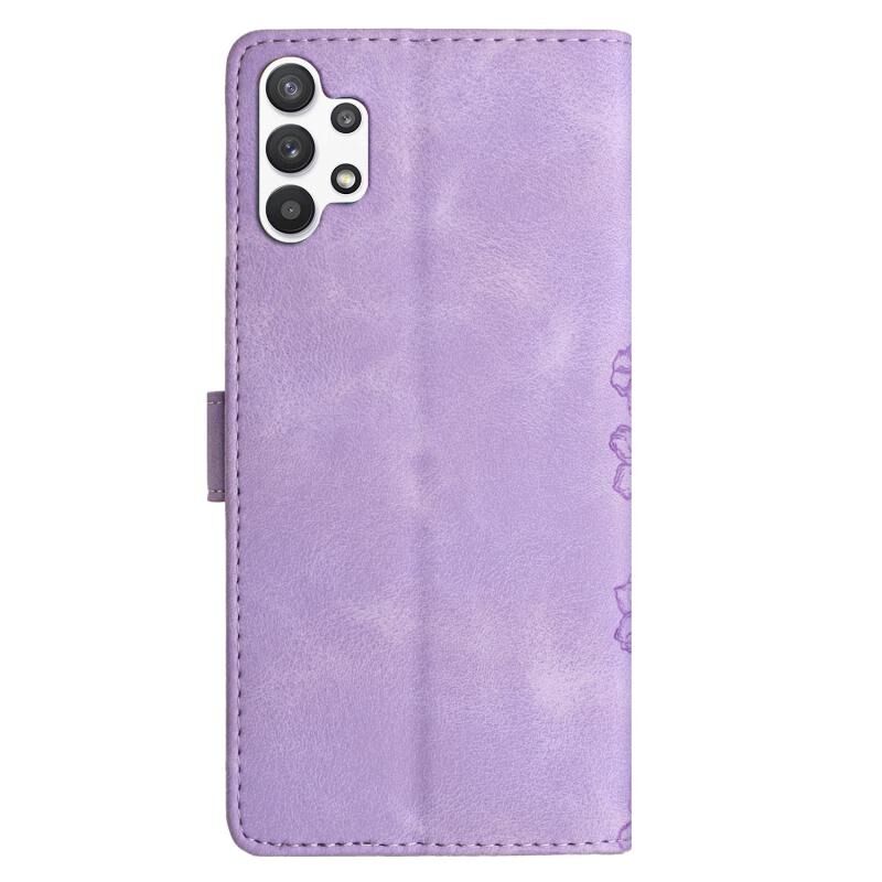 Θήκη τηλεφώνου Samsung Galaxy A32 5G Cherry Blossom Butterfly με ανάγλυφο PU υφή δέρματος (Μωβ)