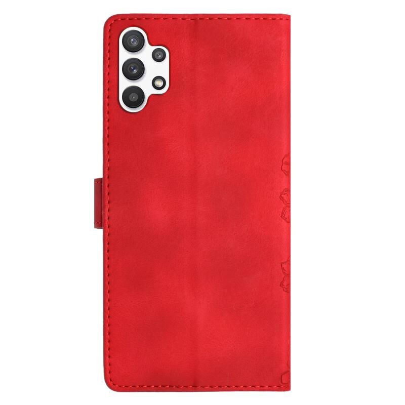 Θήκη τηλεφώνου Samsung Galaxy A32 5G Cherry Blossom Butterfly με ανάγλυφη υφή PU (Κόκκινη)