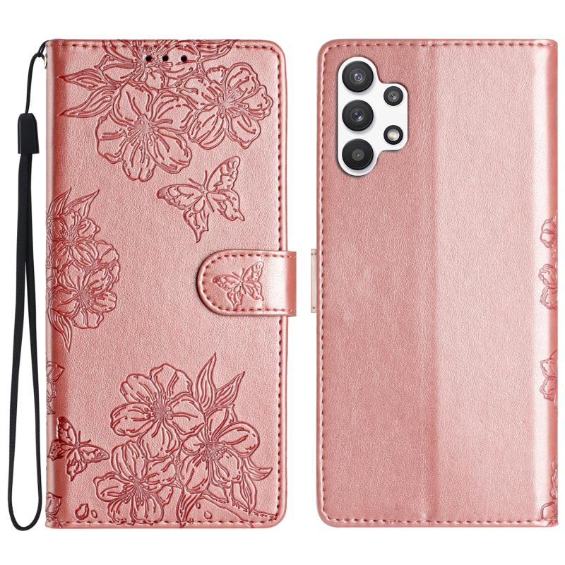 For Samsung Galaxy A32 5G Cherry Blossom Butterfly Skin Feel Embossed PU Phone Case(Rose Gold)