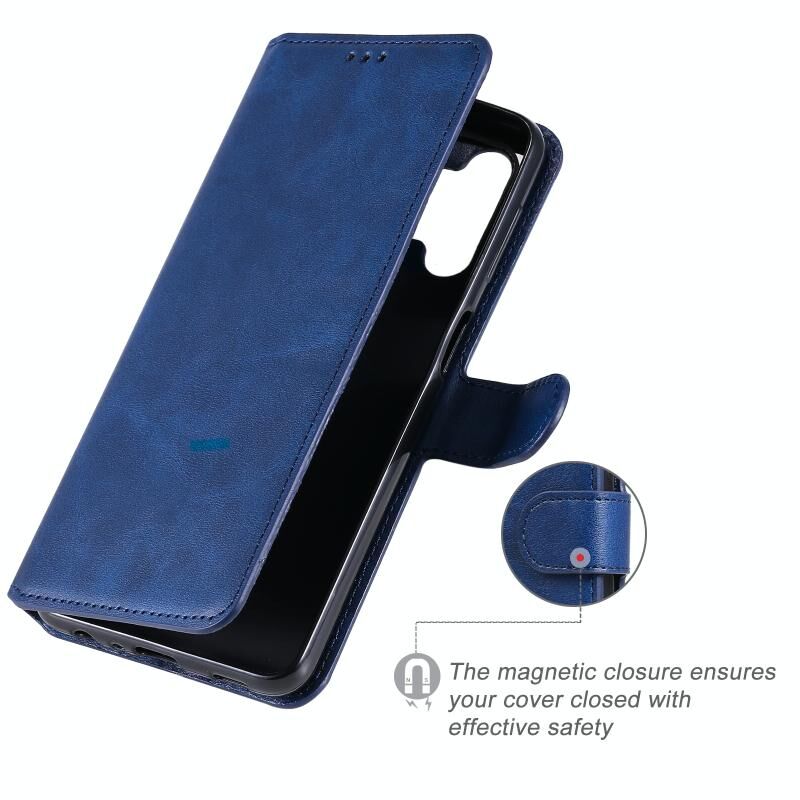 Για Samsung Galaxy A32 5G Κλασική θήκη από δέρμα μοσχαριού PU + TPU οριζόντια Flip με θήκη για κάρτες και υποδοχές και πορτοφόλι (μπλε)