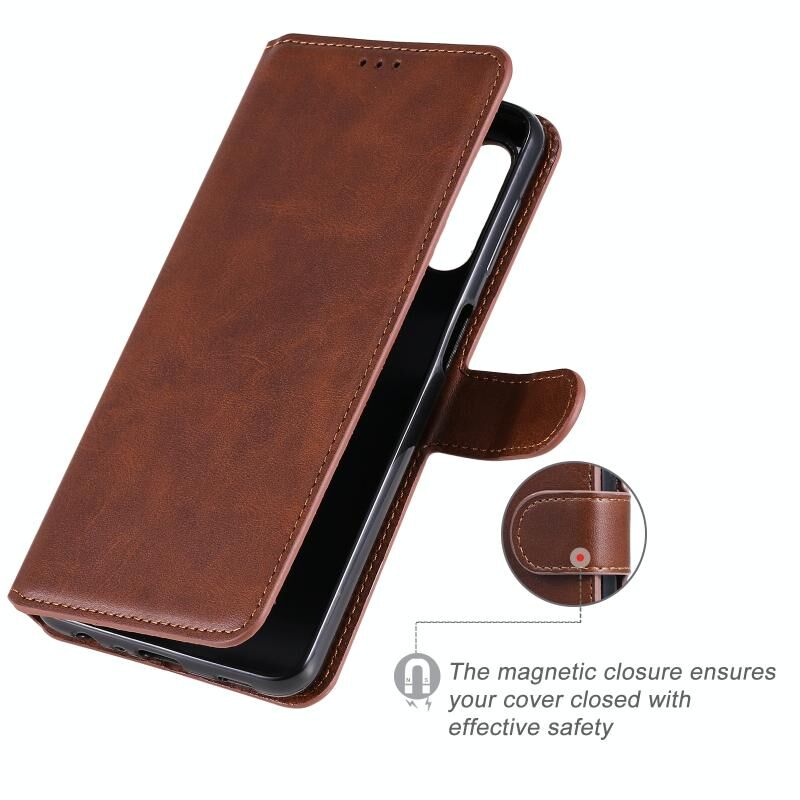 Για Samsung Galaxy A32 5G Κλασική θήκη από δέρμα μοσχαριού PU + TPU οριζόντια Flip με θήκη για κάρτες και υποδοχές & πορτοφόλι (καφέ)