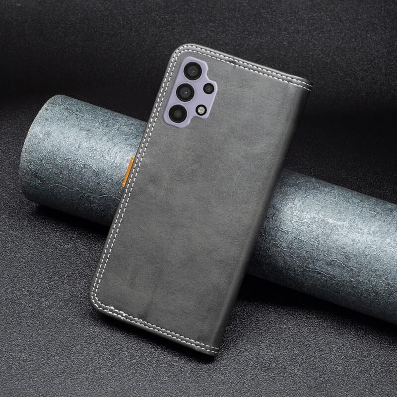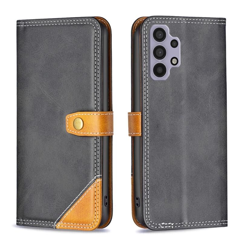 Θήκη τηλεφώνου Samsung Galaxy A32 5G από δέρμα με διπλή ραφή και αντιστοίχιση χρώματος (Μαύρο)