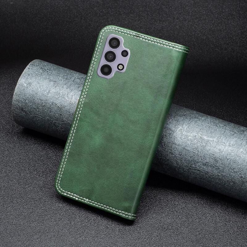 Θήκη τηλεφώνου Samsung Galaxy A32 5G από δέρμα με διπλή ραφή και αντιστοίχιση χρώματος (πράσινο)