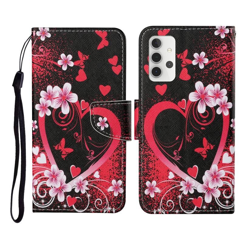 Θήκη δέρματος οριζόντιας αναδίπλωσης με σχέδιο ζωγραφικής, χρώματος για Samsung Galaxy A32 5G με βάση στήριξης & υποδοχές καρτών & πορτοφόλι & κορδόνι (Μαύρος Πλανήτης)