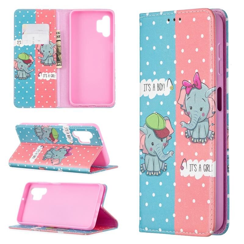 Θήκη Samsung Galaxy A32 5G με πολύχρωμο σχέδιο, αόρατο μαγνητικό, οριζόντιο flip από δερματίνη PU με βάση & θήκες για κάρτες & πορτοφόλι (Ελέφαντας)