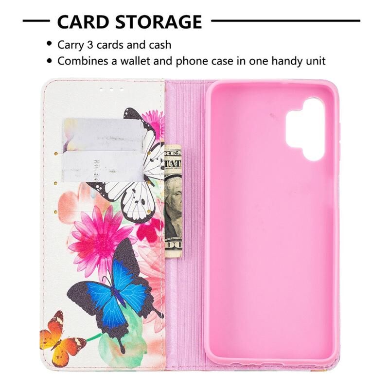 Θήκη Samsung Galaxy A32 5G με πολύχρωμο σχέδιο, αόρατο μαγνητικό, οριζόντιο flip από δερματίνη PU με βάση & θήκες για κάρτες & πορτοφόλι (Δύο Πεταλούδες)