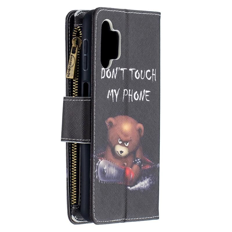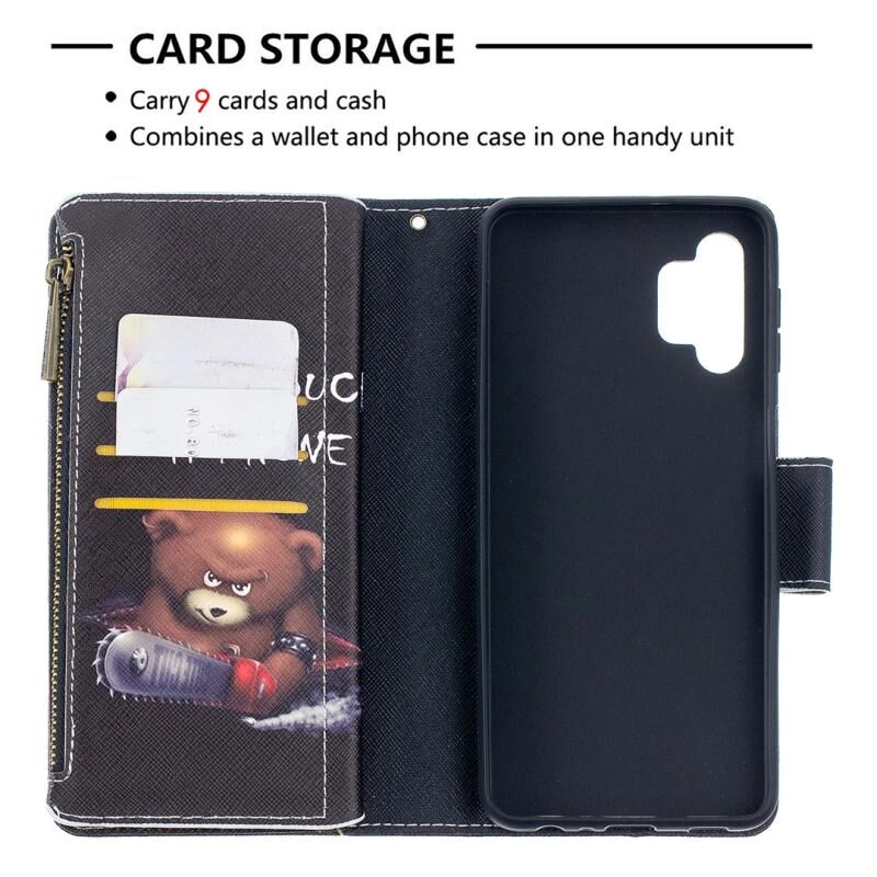 Θήκη Samsung Galaxy A32 5G Δερμάτινη Οριζόντια με Φερμουάρ, Πολύχρωμο Σχέδιο, με Θήκη & Θήκες Καρτών & Πορτοφόλι (Αρκούδα)