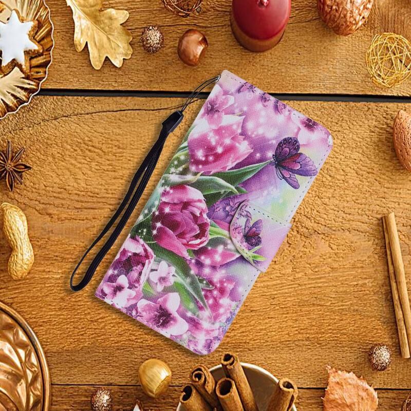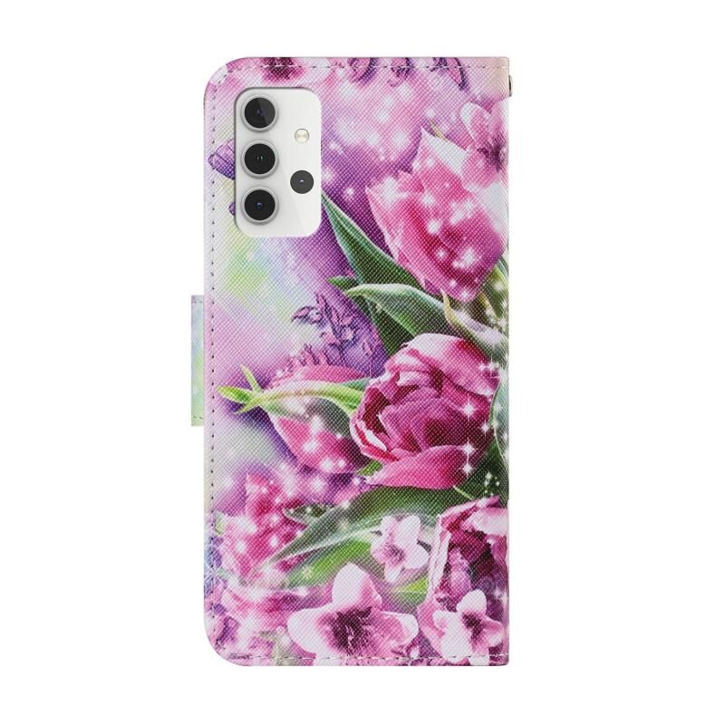Θήκη Samsung Galaxy A32 5G με πολύχρωμο σχέδιο, οριζόντια αναδιπλούμενη από δερματίνη PU με βάση στήριξης, θήκες για κάρτες, πορτοφόλι & λουρί (Ροζ Πεταλούδα)