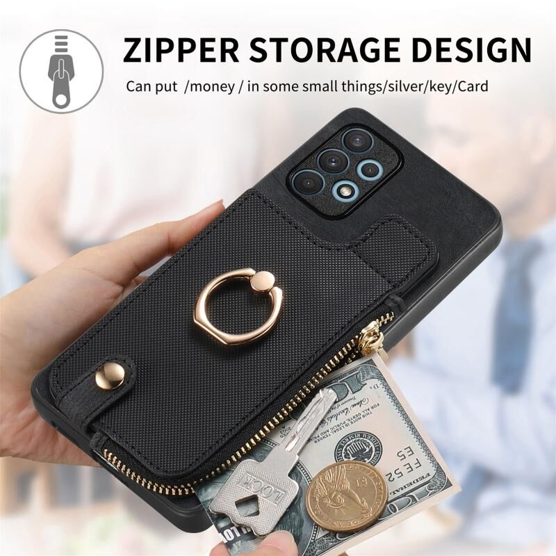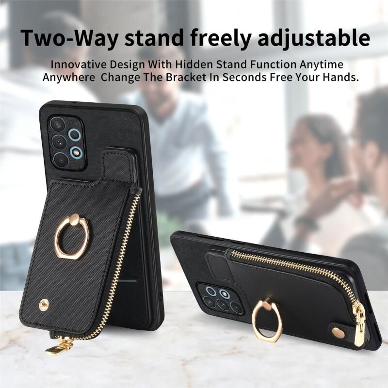 Για Samsung Galaxy A32 5G Cross Δερμάτινο δαχτυλίδι κάθετη φερμουάρ πορτοφόλι πίσω υπόθεση τηλεφώνου (μαύρο)