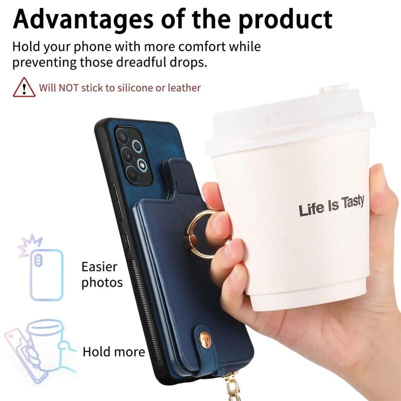 Για Samsung Galaxy A32 5G Cross Δερμάτινο δαχτυλίδι κάθετη φερμουάρ πορτοφόλι πίσω υπόθεση τηλεφώνου (μπλε)