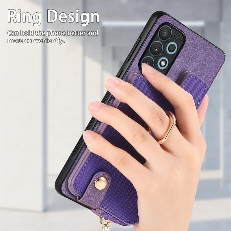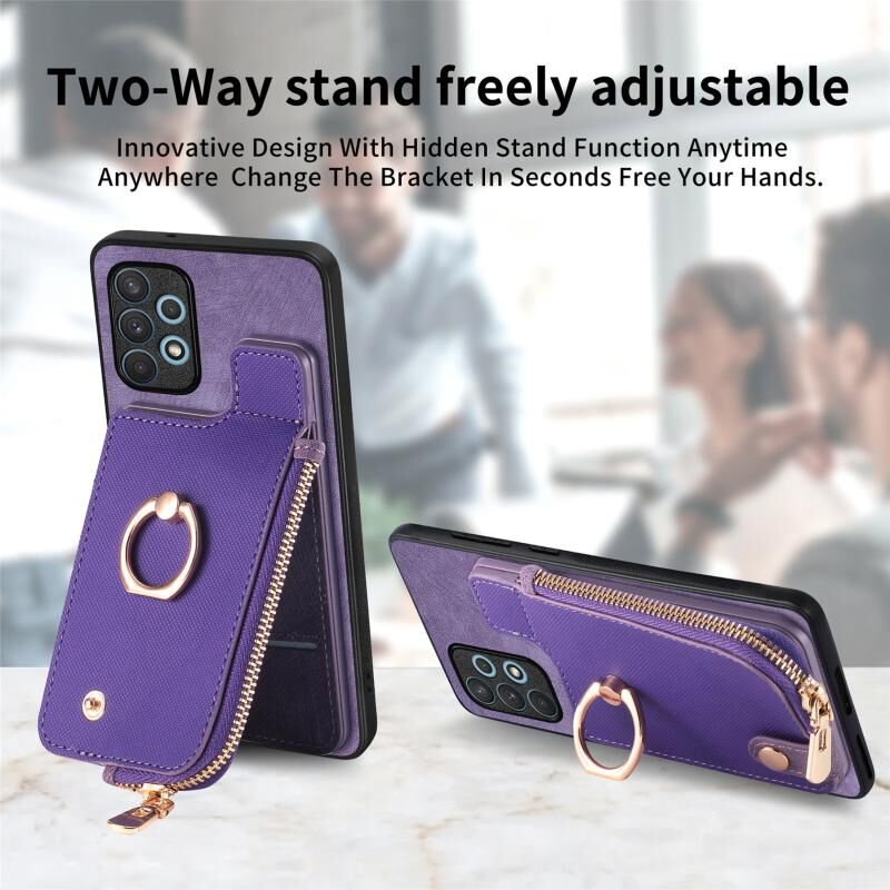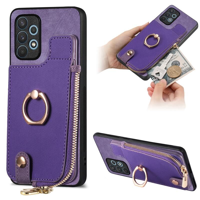 Για Samsung Galaxy A32 5G Cross Δερμάτινο δαχτυλίδι κάθετη φερμουάρ πορτοφόλι πίσω υπόθεση τηλεφώνου (μωβ)