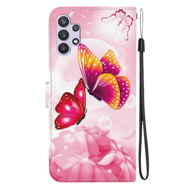 Θήκη τηλεφώνου Samsung Galaxy A32 5G από δέρμα με πολύχρωμο σχέδιο κρυστάλλινης υφής (Χρυσά Φτερά Πεταλούδας)