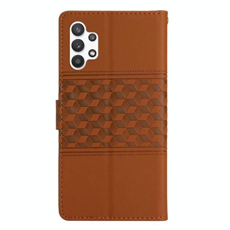 Για Samsung Galaxy A32 5G Diamond ανάγλυφο δέρμα αίσθηση δέρμα υπόθεση τηλεφώνου με κορδόνι (καφέ)