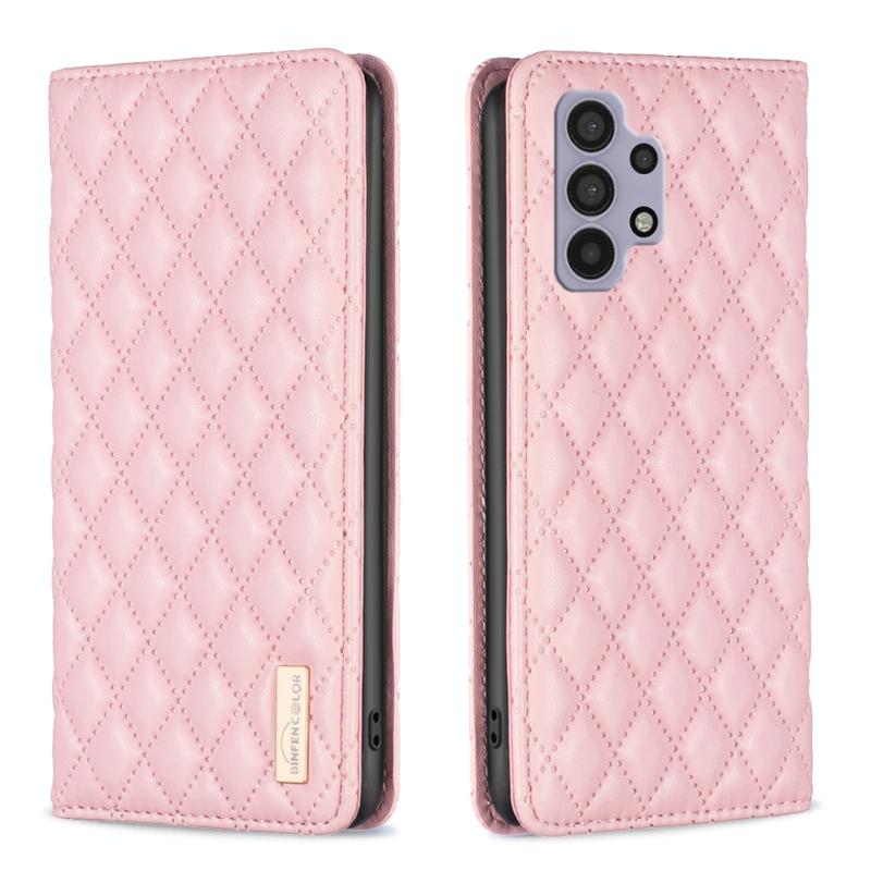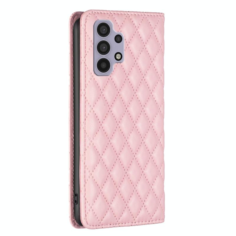 Θήκη τηλεφώνου Samsung Galaxy A32 5G, Δερμάτινη, Πτυσσόμενη, Μαγνητική, με σχέδιο Διαμαντόπλεγμα (ρόζ)